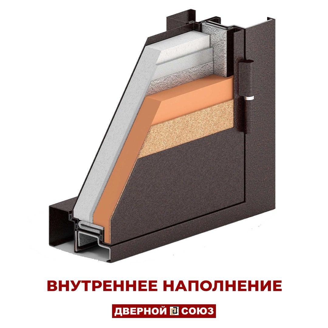 Материал утеплителя очень сильно влияет на звукоизоляцию, лучшими показателями обладают двери с комбинированным утеплением — то есть с сочетанием нескольких материалов